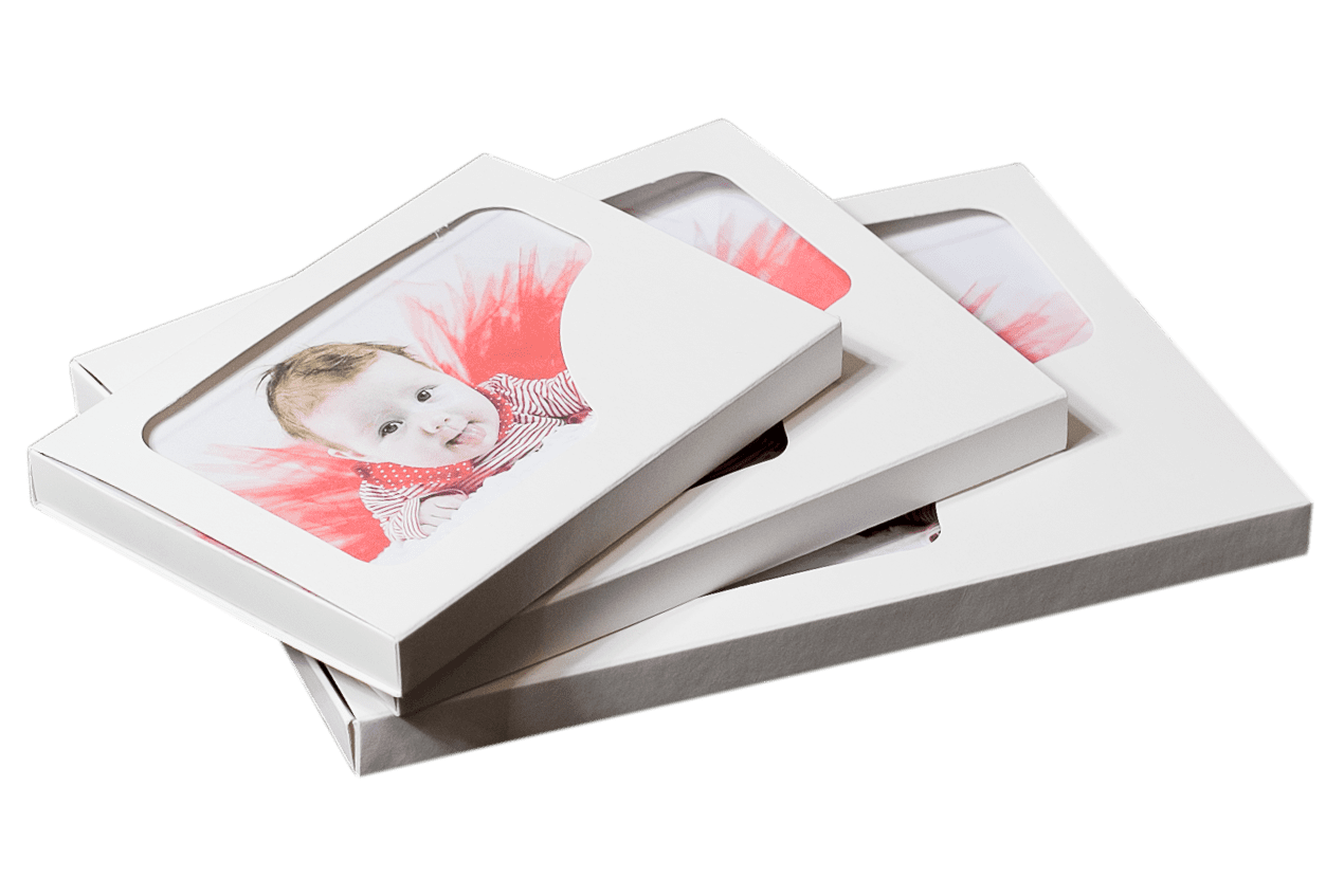 To chyba najbardziej popularne opakowanie, które pozwala pięknie wyeksponować kilka fotografii. Zdjęcia wsuwamy w ramki. Jest też miejsce na płytę czy wizytówkę fotografa.