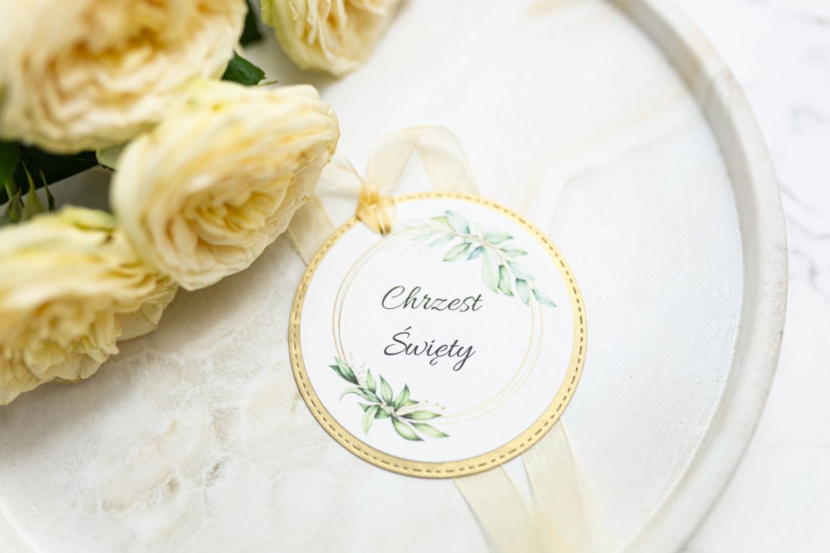 Subtelny detal, który nadaje wyjątkowego charakteru każdej pamiątce z Chrztu Świętego. Etykieta została zaprojektowana z myślą o harmonii, delikatności i ponadczasowej estetyce. Wykonana z wysokiej jakości papieru fakturowanego, zachwyca starannością wykonania. Średnica: 7cm. Dołączona lekko błyszcząca satynowa wstążeczka. Całość doskonale wpisuje się w uroczysty charakter Chrztu Świętego. Etykietka stanowi komplet z kopertą, pudełkiem oraz kartą z podziękowaniem, tworząc estetyczną i harmonijną oprawę całej uroczystości. To drobny, lecz niezwykle ważny akcent, który podkreśla rangę chwili i sprawia, że pamiątki z Chrztu Świętego stają się jeszcze bardziej wyjątkowe. Chcesz dodać imię dziecka czy datę Chrztu Świętego? Wybierz opcję Indywidualna grafika i napisz do nas w uwagach co mamy zmienić.