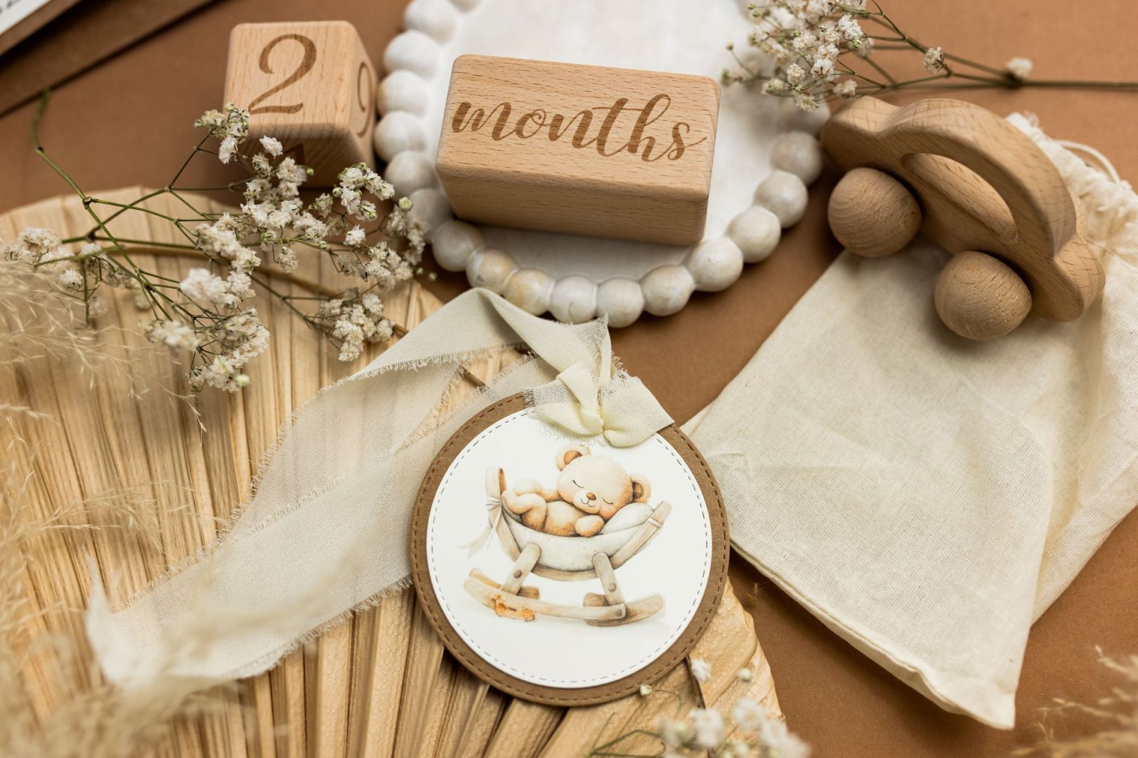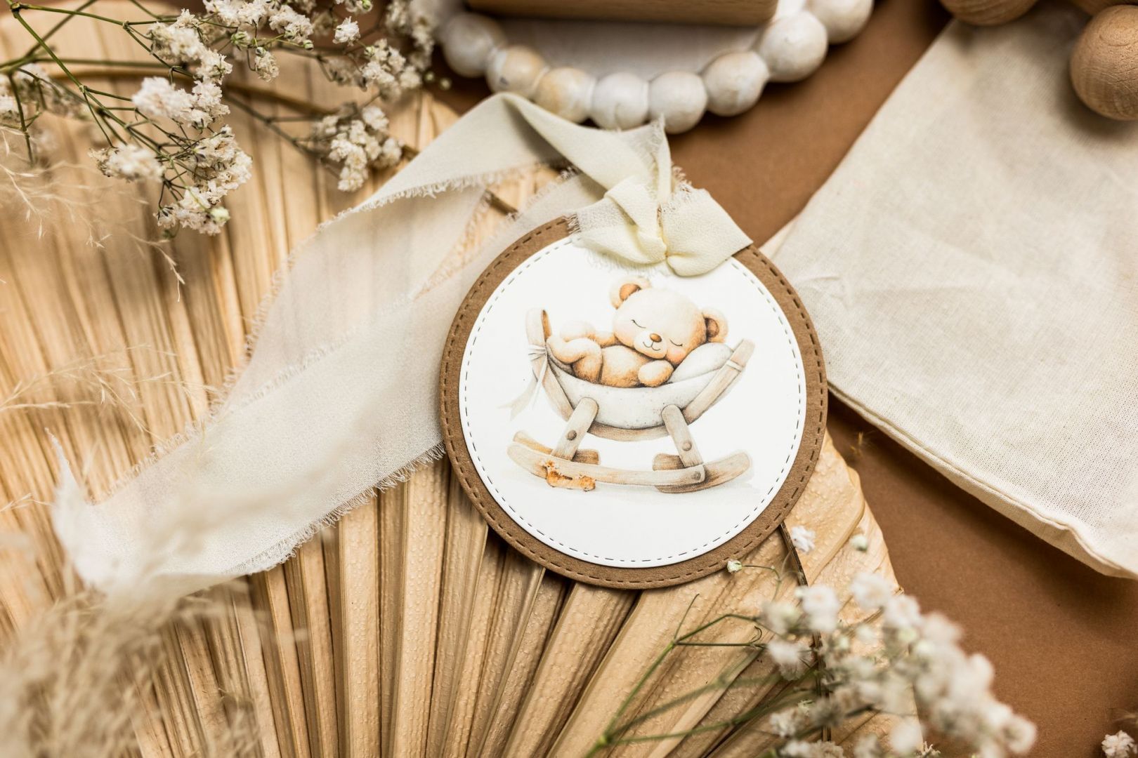 Utrzymana w tym samym stylu co pudełko, zaproszenie i podziękowanie, idealnie dopełnia całość dziecięcych i noworodkowych realizacji.