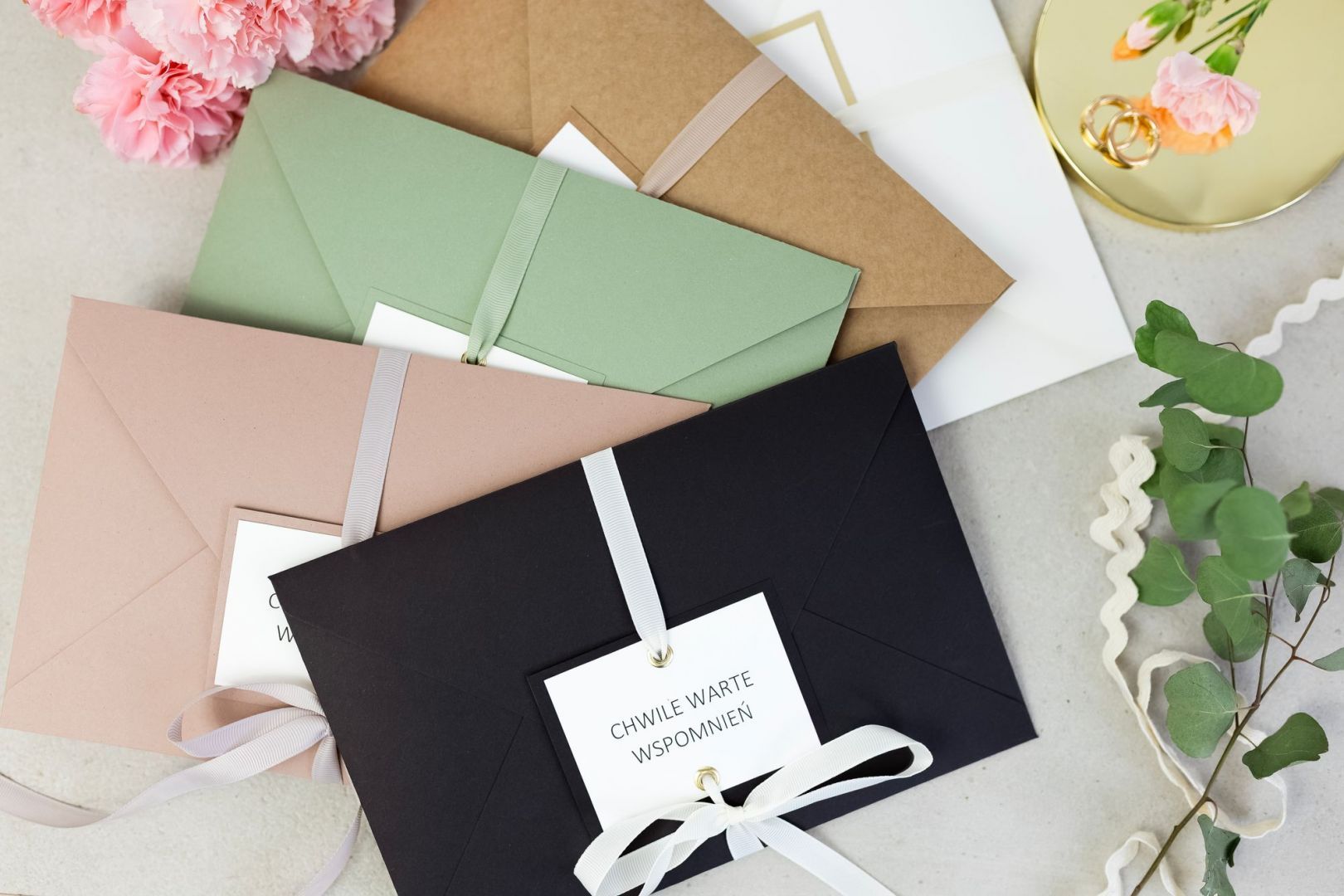 Dostępna jest również personalizowana koperta na fotografie – jeśli chcesz umieścić na niej własne logo, nazwę studia lub dedykację, wybierz opcję „Nadruk indywidualny” i stwórz opakowanie dopasowane do stylu Twojej marki.