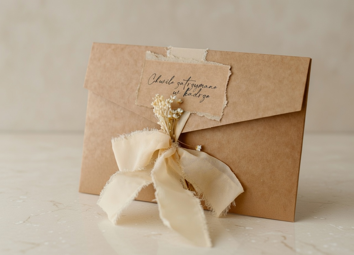 Elegancka, kraftowa koperta wykonana ręcznie z papieru o gramaturze aż 250g. Przeznaczona na zdjęcia w formacie 15x23 cm. Przewiązana szyfonową wstążką. Uroku całości dodaje bukiecik z suszonych kwiatów (gliksja naturalna + bielony żarnowiec). Świetnie sprawdzi się do przechowywania zdjęć lub jako opakowanie na prezent z okazji świąt, urodzin, rocznicy czy ślubu.