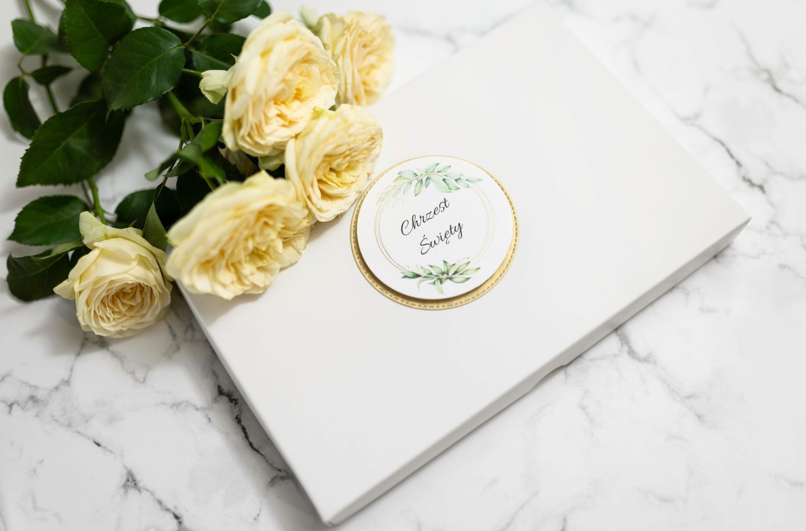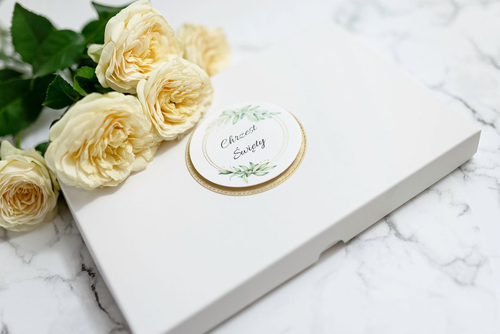 Dzięki możliwości zmiany nadruku, pudełko można dopasować do indywidualnych potrzeb — dodać imię dziecka, datę Chrztu Świętego lub osobistą dedykację.